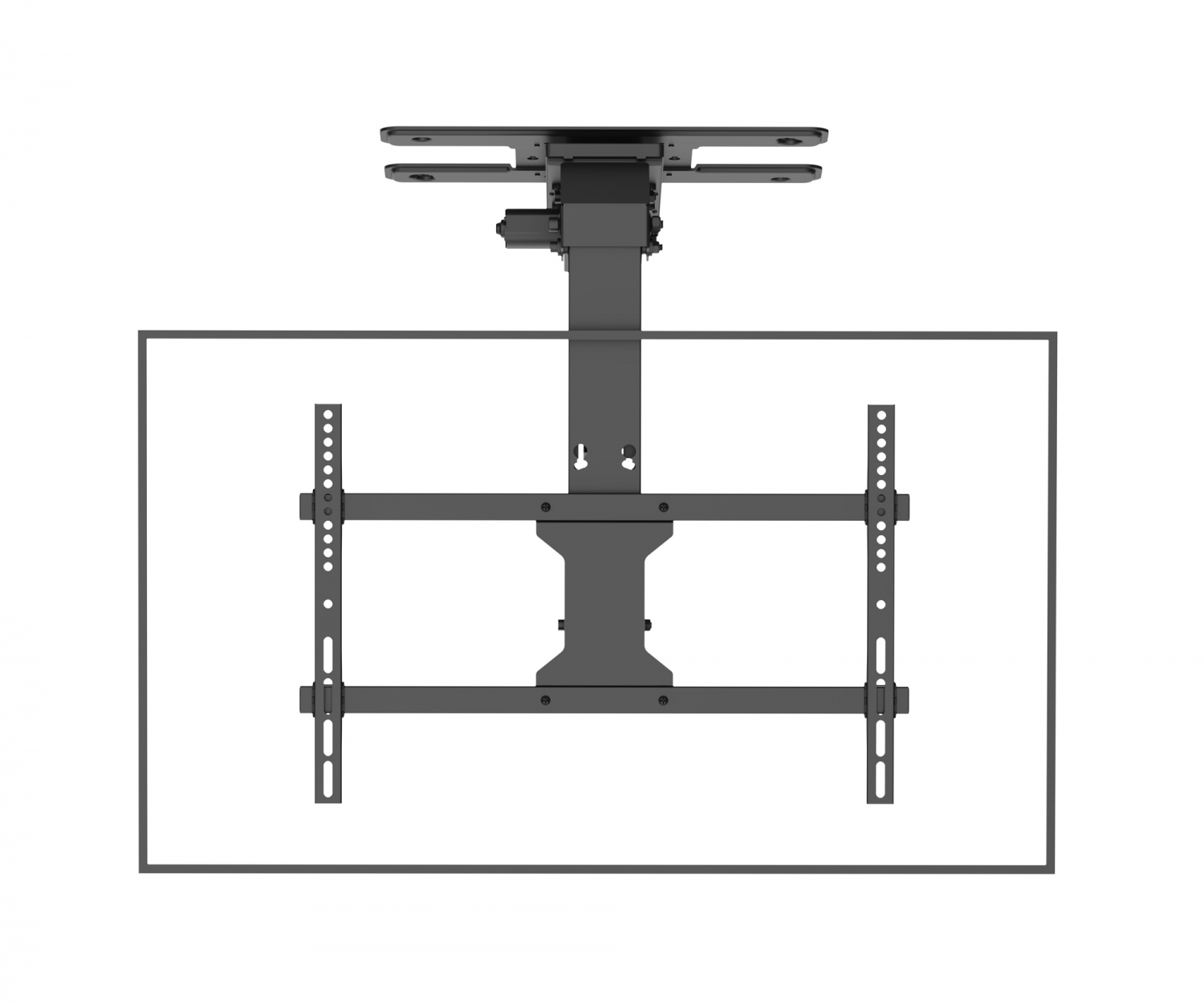 Bovendien kan de beugel dankzij de superieure motor en elektrische duwstang geruisloos en sneller bewegen. Het kantel- en draaibare ontwerp maximaliseert de kijkflexibiliteit.