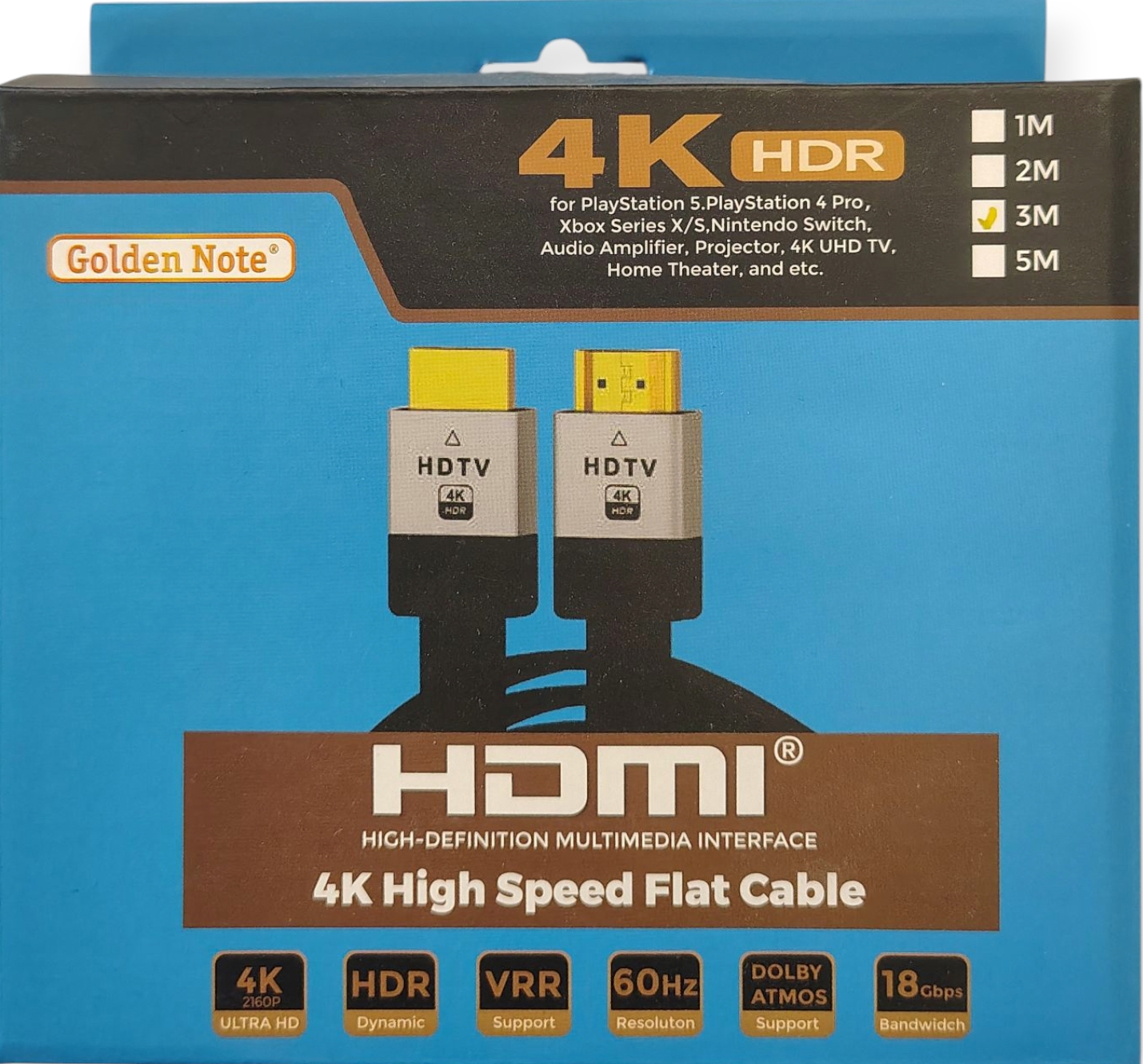 Masterline hdmi A-steker > hdmi- A-steker platte kabel goud 3.00 mtr.